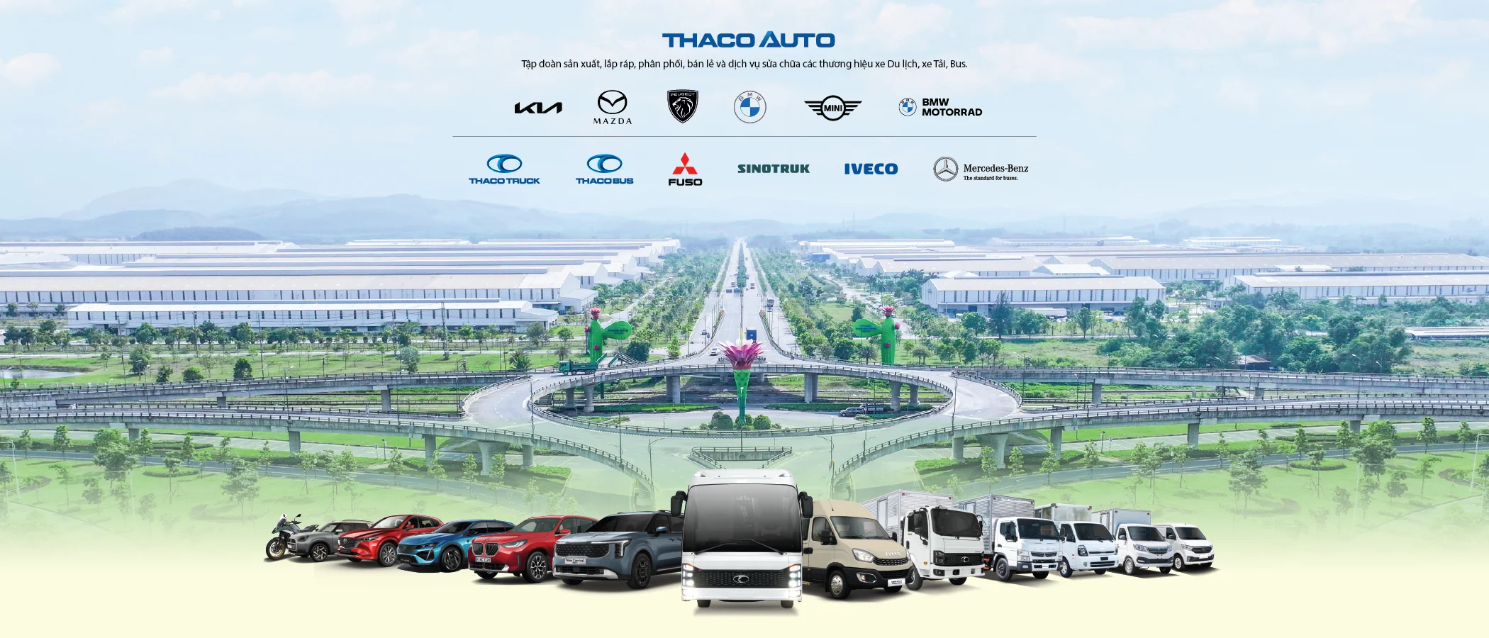 THACO AUTO Nghệ An kinh doanh đầy đủ chủng loại xe du lịch, xe bus, xe tải, xe chuyên dụng đến từ các thương hiệu ô tô quốc tế (Kia, Mazda, Peugeot, BMW; Foton) và thương hiệu THACO (THACO BUS), đáp ứng nhu cầu sở hữu xe chuyên biệt đến từng khách hàng.